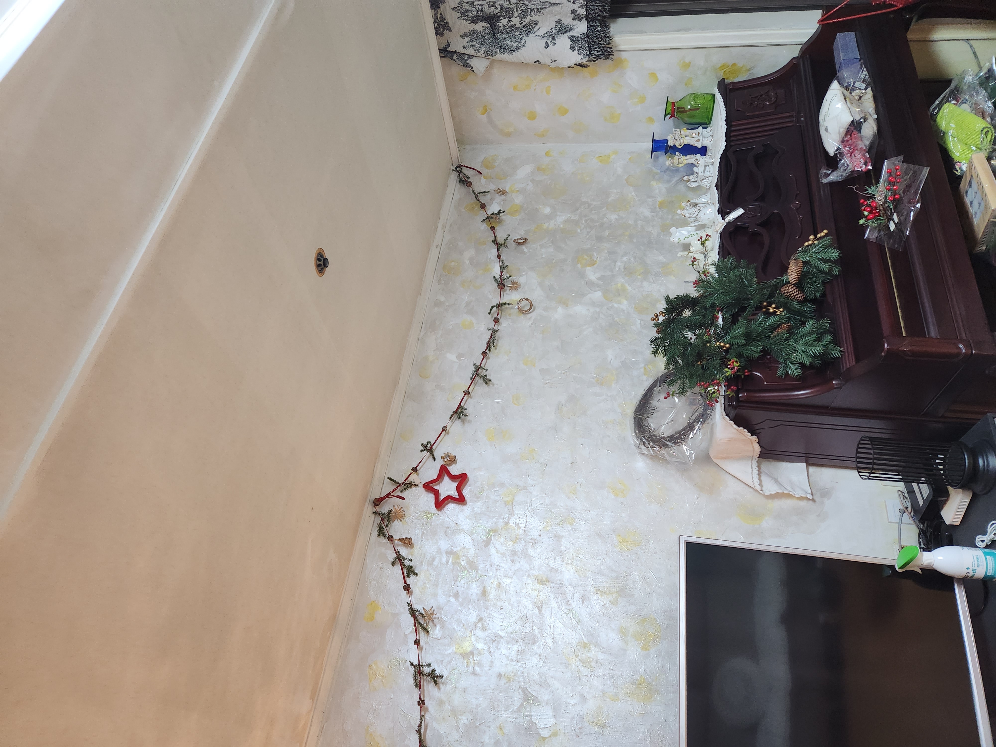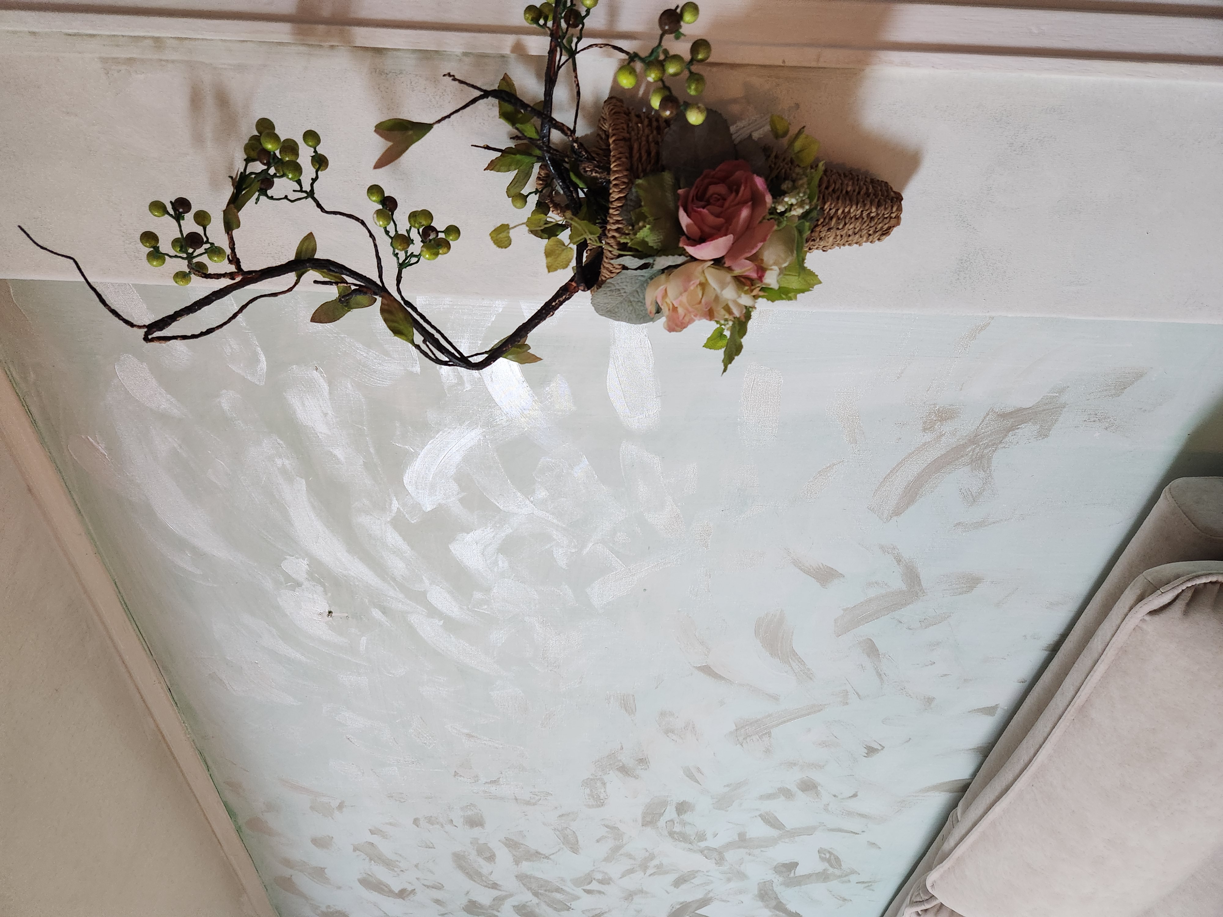 거실 벽도 아크릴 펄 물감으로 실크 벽지 위에 칠했었지