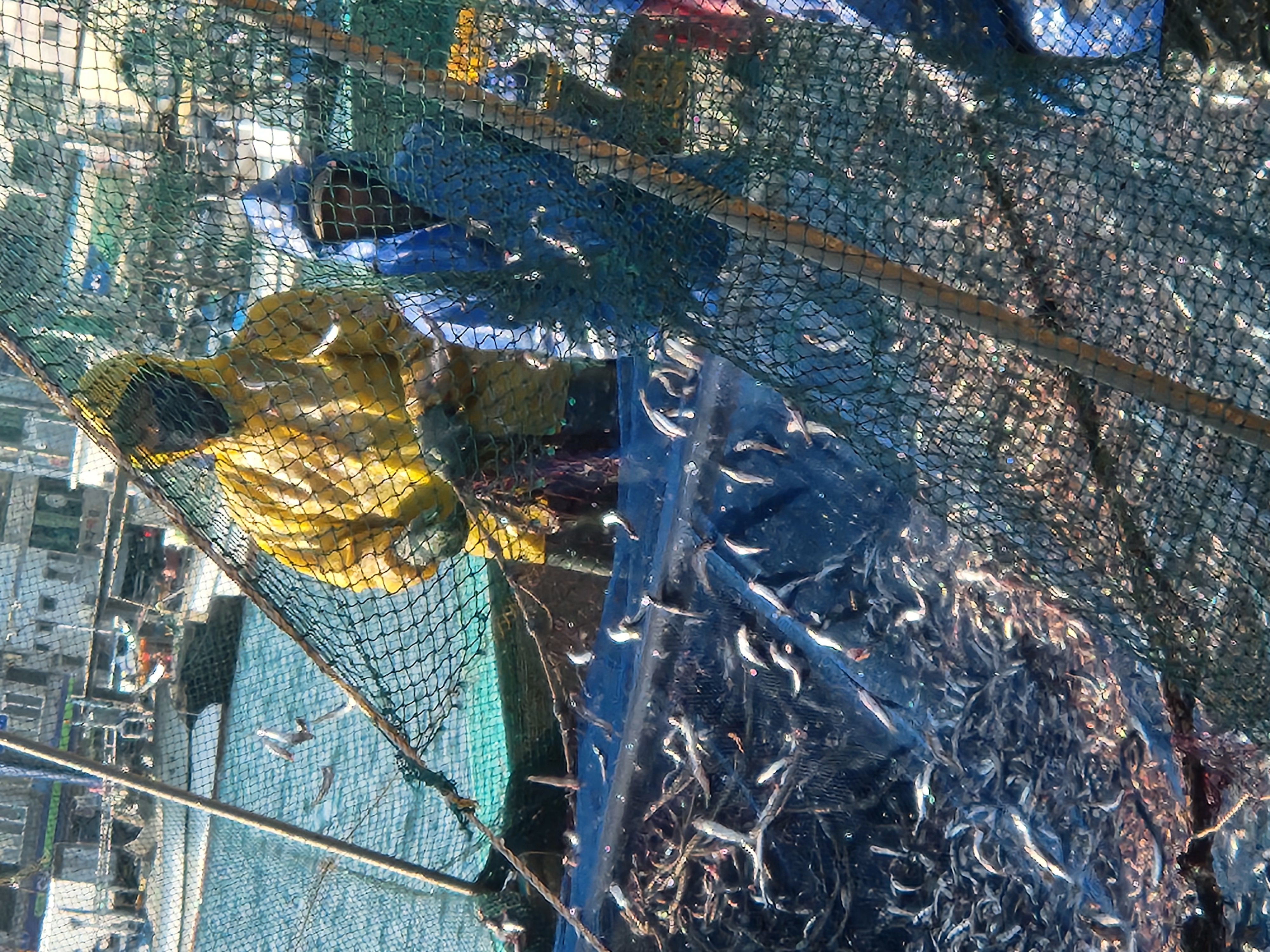 오늘도 여러 배에서 멸치를 박스에 쓸어 담고 있는 풍경