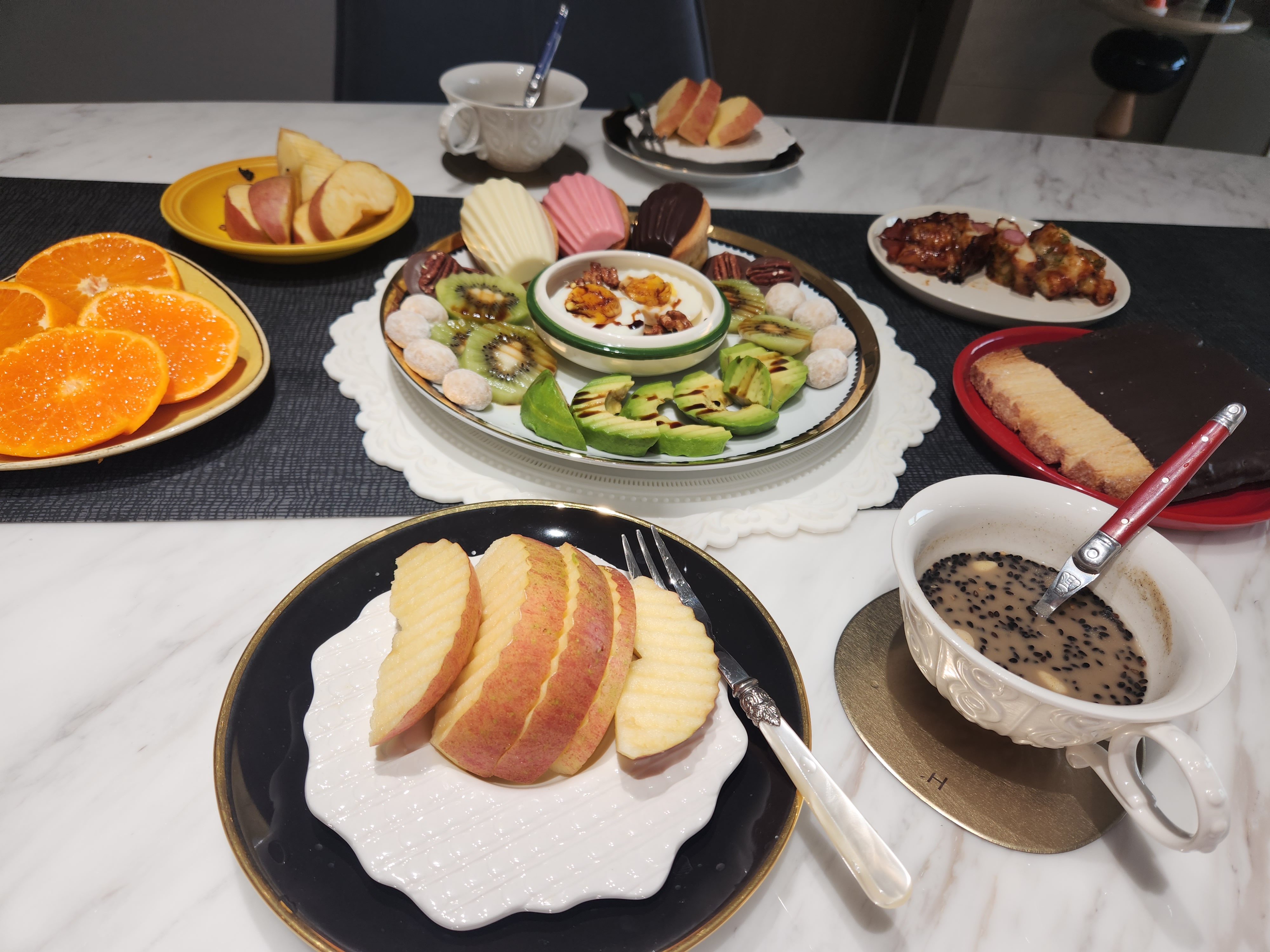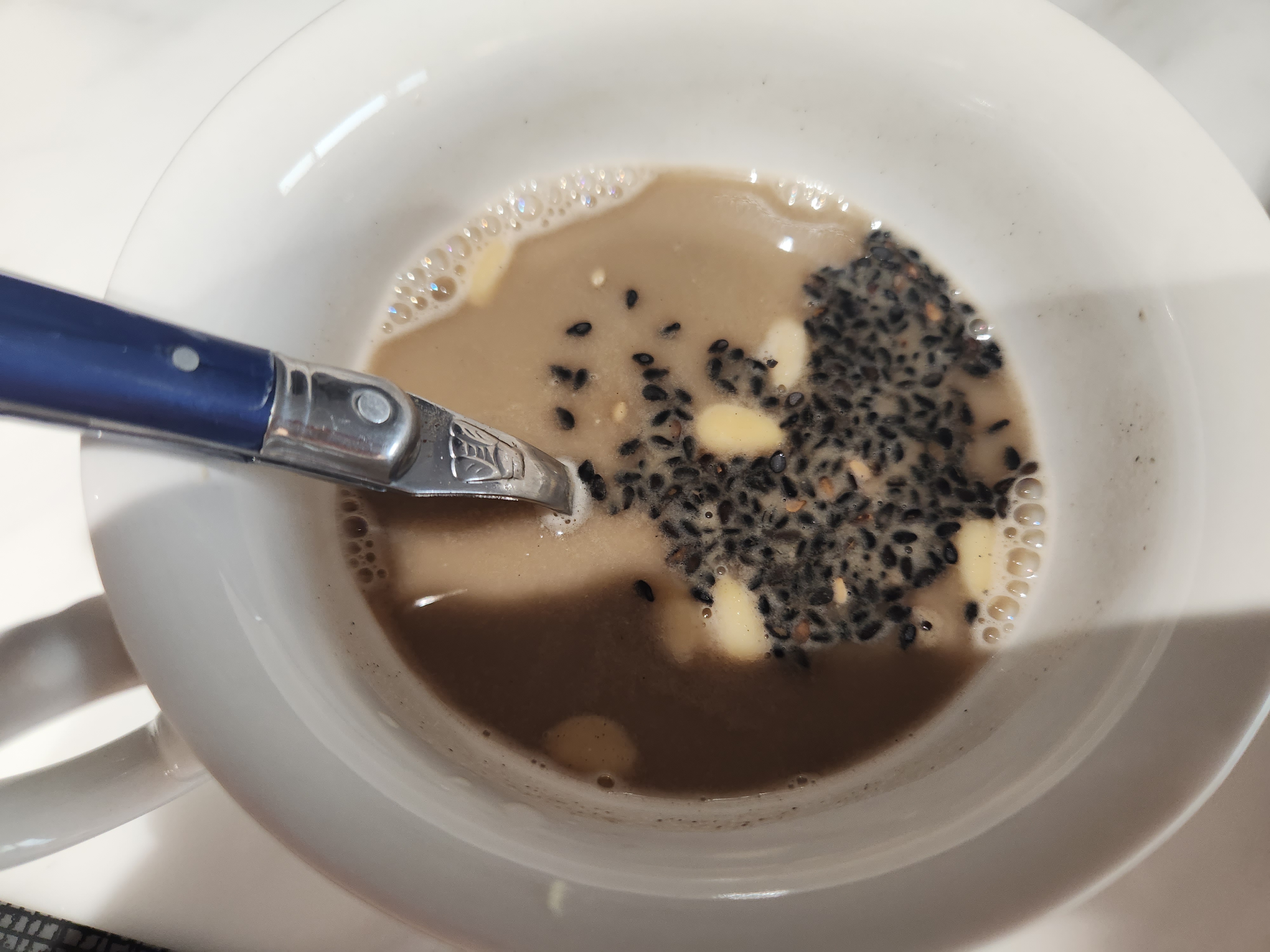 오늘은 검은 콩가루를 따뜻한 물에 타서잣ㆍ깨 꿀 넣고 한잔 하면서 있는 것들을 곁들입니다간단한 아침해는 벌써 떴고요다시 하루의 시작 새 아침이 밝았네요